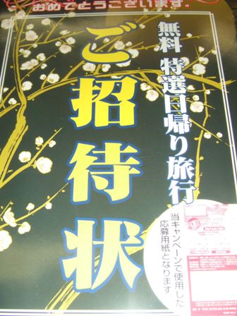 無料 日帰り温泉旅行招待状」と書かれたものが届いていました