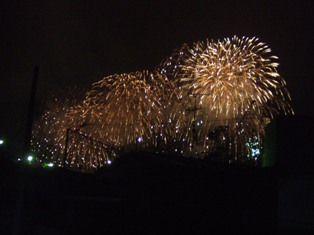 自宅に帰ってすぐ、ベランダでビール片手に花火見物。