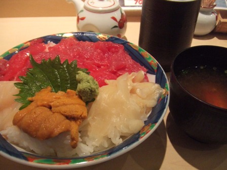 具材はマグロ、ウニ少々、ホタテ少々です。