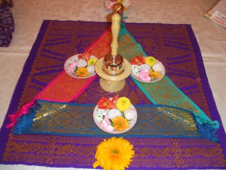 カラーライザーを使って、お供え物としてお花とキャンドルを飾って祭壇を作ります。