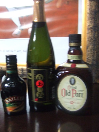 左の写真、中央にあるのは、ぼんてん酒場の大将から頂いた「白玉の露」という鹿児島の芋焼酎。