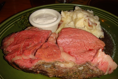 )夜はホテル近くのステーキハウス