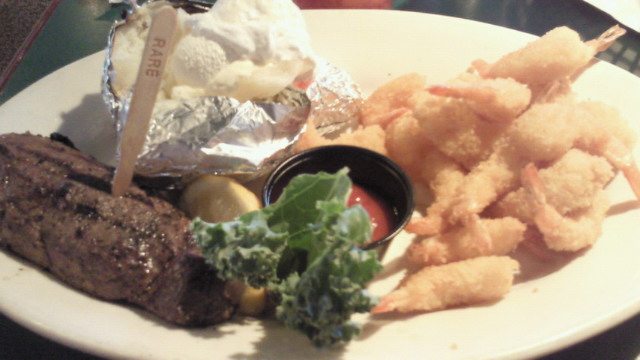 買い物のあと、一緒にステイしているモーリーがステーキ
