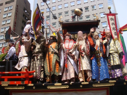 山車やすずめ踊りが賑やか