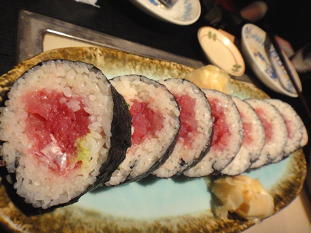 親方が作る太巻は、まぐろがたっぷりで、わさびがちょうどよく、