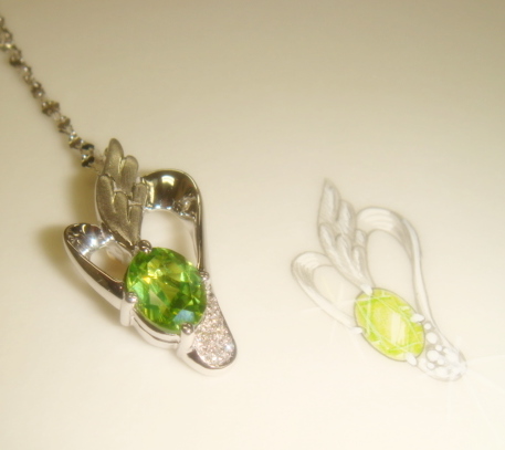 イブニングエメラルドとも言われていて、照明の下で特に輝くジュエリーなんですよ