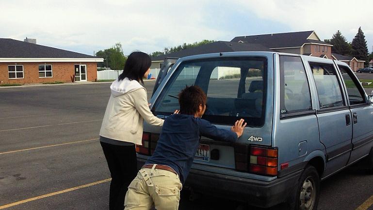に乗せてもらったのですが、なんと後ろから押さないと車は走り出しません
