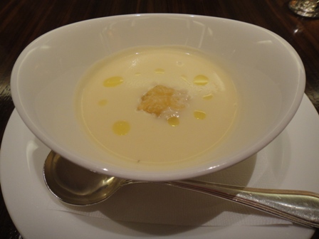 赤ざら貝の貝柱が入ったじゃがいものスープは
