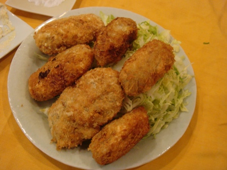 GO2さんは慣れた手つきでコロッケを丸めて、ミカちゃんが揚げてくれました。